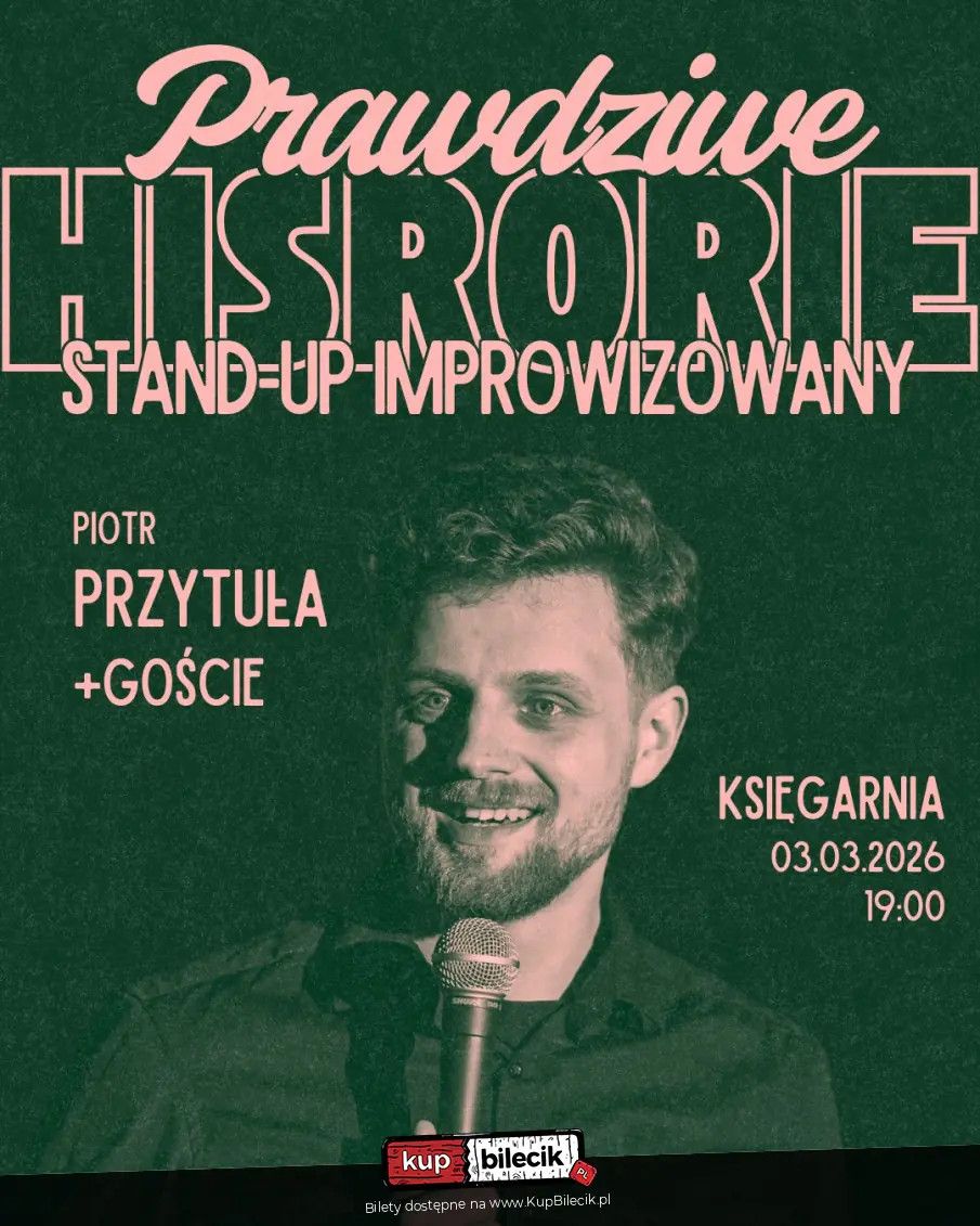 bilety: Pierwszy raz. Bez scenariusza. Bez cenzury. Bez ściemy. "Prawdziwe historie" to wieczór, w którym wszystko dzieje się tu i teraz. Jedna scena. Jeden gość. Dwa mikrofony. I historie, które wydarzyły się naprawdę. Stand-up comedy: Piotr Przytuła artyści: Piotr PrzytułaPochodzący z Sosnowca facet po trzydziestce. Podobno kiedyś trenował boks, ale częściej widziano potwora z Loch Ness niż jego sierpowy. Na swoim ostatnim turnieju przegrał z wolnym losem. Teraz los skierował go do komedii, gdzie idzie mu coraz lepiej. Na scenie raz wulkan energii, raz spokojne fale Dunaju. Nigdy nie wiesz, czym Cię zaskoczy. Organizator wydarzeń komediowych, komik, konferansjer, akrobata. Po prostu Przytuła. Piotr Przytuła. Bilety do nabycia na: KupBilecik.pl |